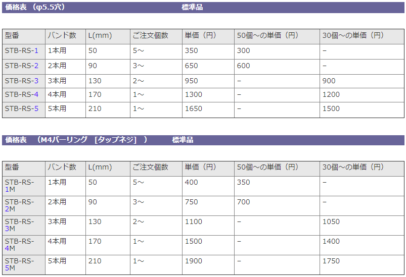 STB-RS-1 は 5個以上から、STB-RS-2 は3個以上から、STB-RS-3 は2個以上から、STB-RS-4~5 は1個以上からご注文を承ります