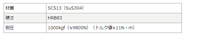 耐圧能力は1000kgf(≒9800N)(トルク≒11N・m)