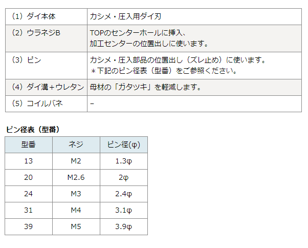 ※KSM-B-型番をご注文の際は下記の「ピン径表」をご確認の上、型番をお選びいただき、ご指定ください。