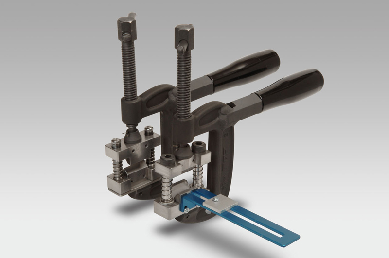 本品は、アルミからステンレスまで、金属板(板厚2mm・幅20mm)の曲げ加工が自在に行えるミニベンダーです。耐圧1000kgf(≒9800N)(トルク≒11N・m)