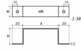 ステンレス t2.0 (sus304 片面研磨 #400) STB-TC–▲ ・▲はWの値で決められています。下の表をご確認ください ・1個からご注文を承ります ・ご注文個数によって単価が異なります。詳しくは価格表をご覧ください ・ご注文時にW、H、Aの値とa面の寸法をご指定ください